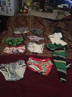Boys clothes and underwear clean size 6 and small and I also have some black suede Timberlands with a gold chain attached size 12 normal wear$50Federal Way, WA
