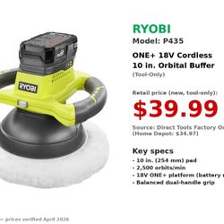 Ryobi 18V ONE+ Cordless 10" Orbital Buffer (P435) — like new, with mostly unused bonnets $10Burien, WA