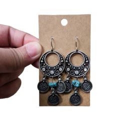 Silver Toned Turquoise Bling Circles Dangle Earrings$50Redmond, WA