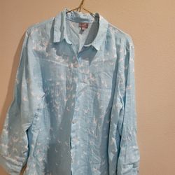 J. Jill. 100% Linen Blouse/Shirt. Powder Blue W/ Birdies Large$5Mukilteo, WA
