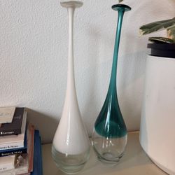 Vintage Signed Hand Blown Art Studio Glass 1995 Leaf Vase 10.5”$110Marysville, WA