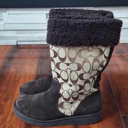 Coach Kally Women’s Signature Brown Suede Sherling Khaki Boots Mid Calf Sz 6.5B$55Mukilteo, WA