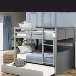 Grey Full Over Full Bunk Bed With Trundle (And Mattresses)$400Shoreline, WA