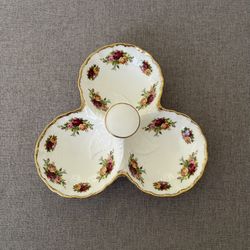 1962 Royal Albert old Country Rose 3 Sections Dish 6 1/4” D Triple cavity server with centre handle bone china England.$55Kirkland, WA