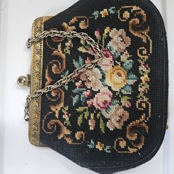 Vtg Needlepoint Tapestry Carpetbag Purse Bag Floral with Mirror Pouch$20Edmonds, WA