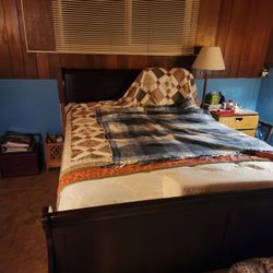Solid Wood Bed Set W/ Matching Bed, Nightstands, Fullsize Mattress And Box Spring $300Lynnwood, WA