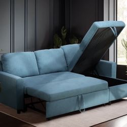 Blue Chenille Sectional Sleeper Sofa Couch Pull Out Bed $580Seattle, WA