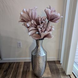 Pier 1 Imports Embossed Metal Decorative Vase & Flowers $55Seattle, WA