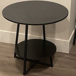Modern Round Side/End/Coffee Table With The Black Wood Top And Bottom Shelf, Matte Black Metal Base 26” In Diameter H18”$25Bellevue, WA