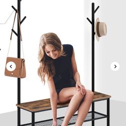 Rolandtar Shoe Bench with a Rustic Wood Seat, 2 Metal Mesh Shelves, 2 Coat Racks with 8 Hooks$32Bellevue, WA