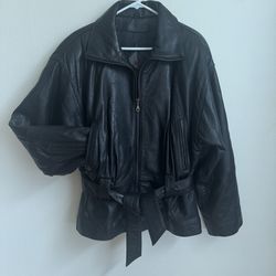 Women Large - Michael Kors Designer Authentic Genuine Leather Jacket Motorcycle Bomber Coat Black Zipper$150Seatac, WA