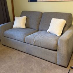 Compact Grey Textured Fabric Loveseat with Accent Pillows$175Renton, WA