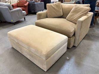 CRATE & BARREL Tan Oversized Armchair with Rolling Storage Ottoman$199Seatac, WA