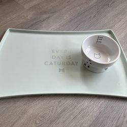 Neko ichi cat raised water bowl & Caturday mint green color feeding mat$10Snohomish, WA