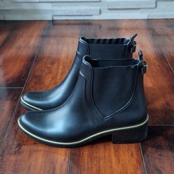 Kate Spade New York Black Rubber Chelsea Rain Boots Gold Trim Size 8 Waterproof