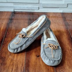 UGG Dakota Moccasin Slippers Gray Suede Shearling Lined Women’s Size 9