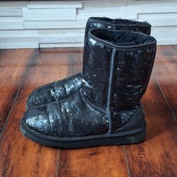UGG 3161 Classic Short Black Sequin Sparkle Sheepskin Lined Boots Women’s Size 8$45Mukilteo, WA