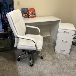 White Desk, Executive Office Chair and Filing Cabinet $120Kirkland, WA