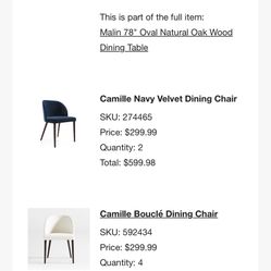 Camille Navy Dinning Chair$1,500Seattle, WA