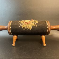 Antique Wood Rolling Pin Foot Stool Rest Embroidered Needlepoint Floral Green$80Lake Stevens, WA