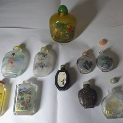 Set Of 10 Chinese Reverse Painted Snuff/perfume/liquid Bottles With 9 Stoppers, All In Good Condition $145Seattle, WA
