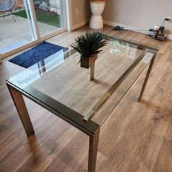 THAYLER COGGIN GLASS TOP TABLE WITH CHROMED STEEL BASE - Can Deliver $495Everett, WA