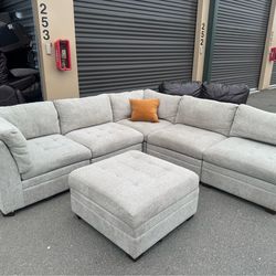 Gray Linen Sectional Couch And Ottoman $650Bellevue, WA
