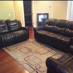 Brown Leather Fully Reclining 3 Piece Sofa Set $1,600Seattle, WA