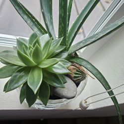 Plant Succulent, Aloe And Cactus In Nice Glass Vase $15Everett, WA