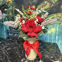 Cute Handmade Flower Arrangement with Red Bow. $10Lewis Mcchord, WA