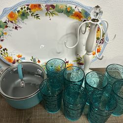 Pioneer woman sauce pan, Turkey platter, set of large glasses and mug tree. Excellent Condition$35Lacey, WA