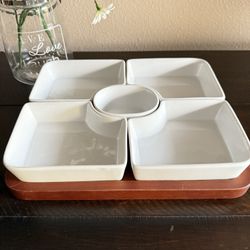 6piece Appetizer serveware w/wood tray 12"x9.5" in excellent new condition $20Tacoma, WA