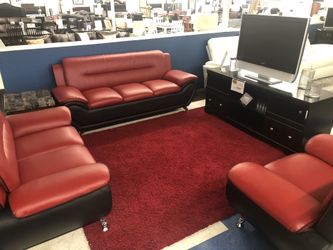 Brand New Black & Red Leather 3pc Modern Set$730Puyallup, WA