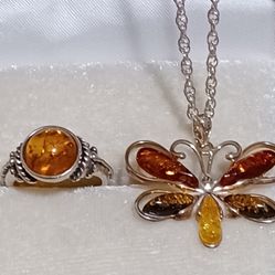 Sterling Silver Baltic Amber Butterfly Necklace With Matching Ring Women's Size 7$65Tacoma, WA