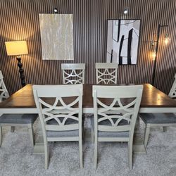 Ashely Rustic Dining Table And 6 Chairs/Set/Farmhouse/Modern/Country/Rustic/Shabby/Distressed/Rare/White/Classic/ Home/Kitchen/Room/Nice Condition/Uni$300Tacoma, WA
