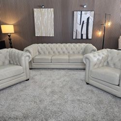 Allington Chesterfield 3-piece Top Grain Leather Set Sofa, Chair, Ottoman - Eggshell White$900Olympia, WA