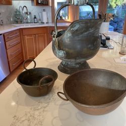Antique Copper Set Coal scuttle, French Copper Kettle And Mixing Bowl$300Tacoma, WA