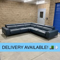 Navy Blue Top Grain Leather L Sectional Couch Sofa w/Adjustable Headrests (FREE DELIVERY! 🚛)$1,200Dupont, WA