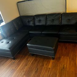 Black Leather Sectional Couch And Ottoman $650Edgewood, WA