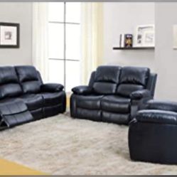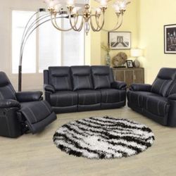 Brand New Black Leather 3pc Reclining Set With Storage Compartments A Drop Down Table & Built In Cup Holders $1,275Spanaway, WA