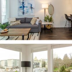 Gray Linen Sectional Couch With Drop Down Table $750Tacoma, WA