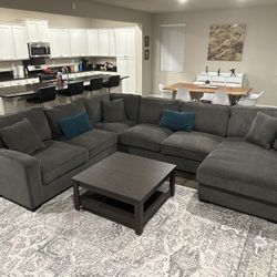 Charcoal Linen Sectional Couch And Ottoman $700Tacoma, WA