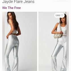 Free People High Rise Jeans 29 Flare Jayde Metallic Silver Pants$40Tacoma, WA