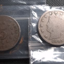 2 Liberty Head “V” Nickels – 1883 & 1905 Antique US Coins$15Kennewick, WA
