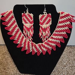 Red Cream Handmade Beaded Necklace And Earrings Set $27Richland, WA