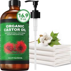 Taoscare 16.9 oz Castor Oil Organic Cold Pressed Unrefined Glass Bottle | 4 Pcs Castor Oil Pack Wrap Organic Cotton Reusable, Caster Oils Kit for Face$15Bothell, WA