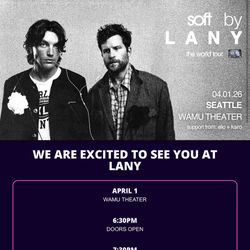 Lany x2 Tickets April 1st WAMU$100Seattle, WA