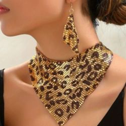 FASHIONABLE LEOPARD PRINT NECKLACE & EARRINGS SET $15Bothell, WA
