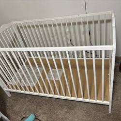 White Wood Baby Crib With Mattress And Matching Changing Table With 3 Drawers $350Kirkland, WA