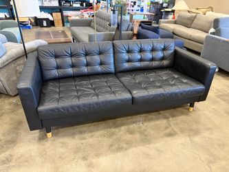 IKEA Morabo Black Tufted Leather Wide Seat Sofa with Light Wood Legs$499Seatac, WA